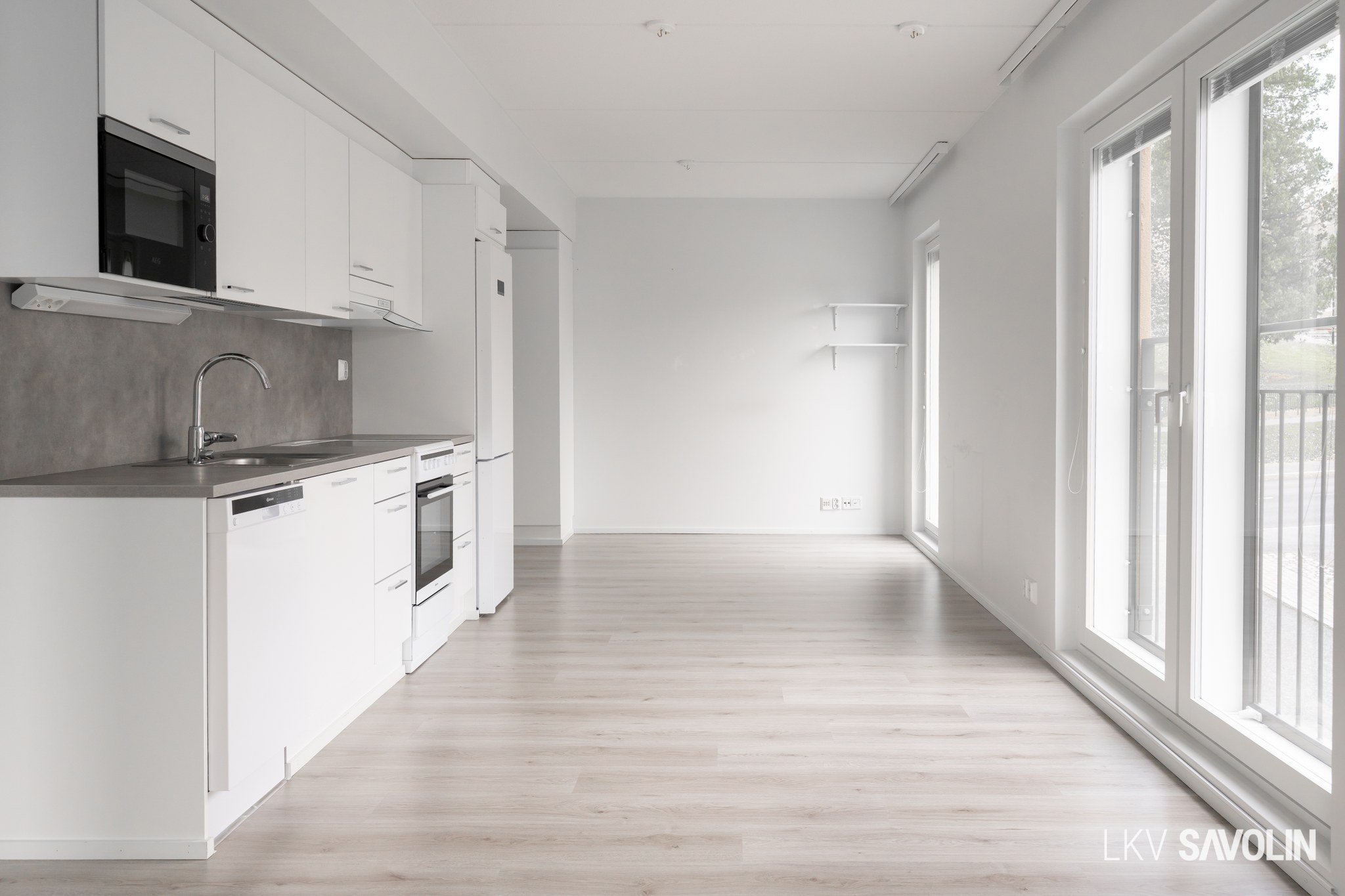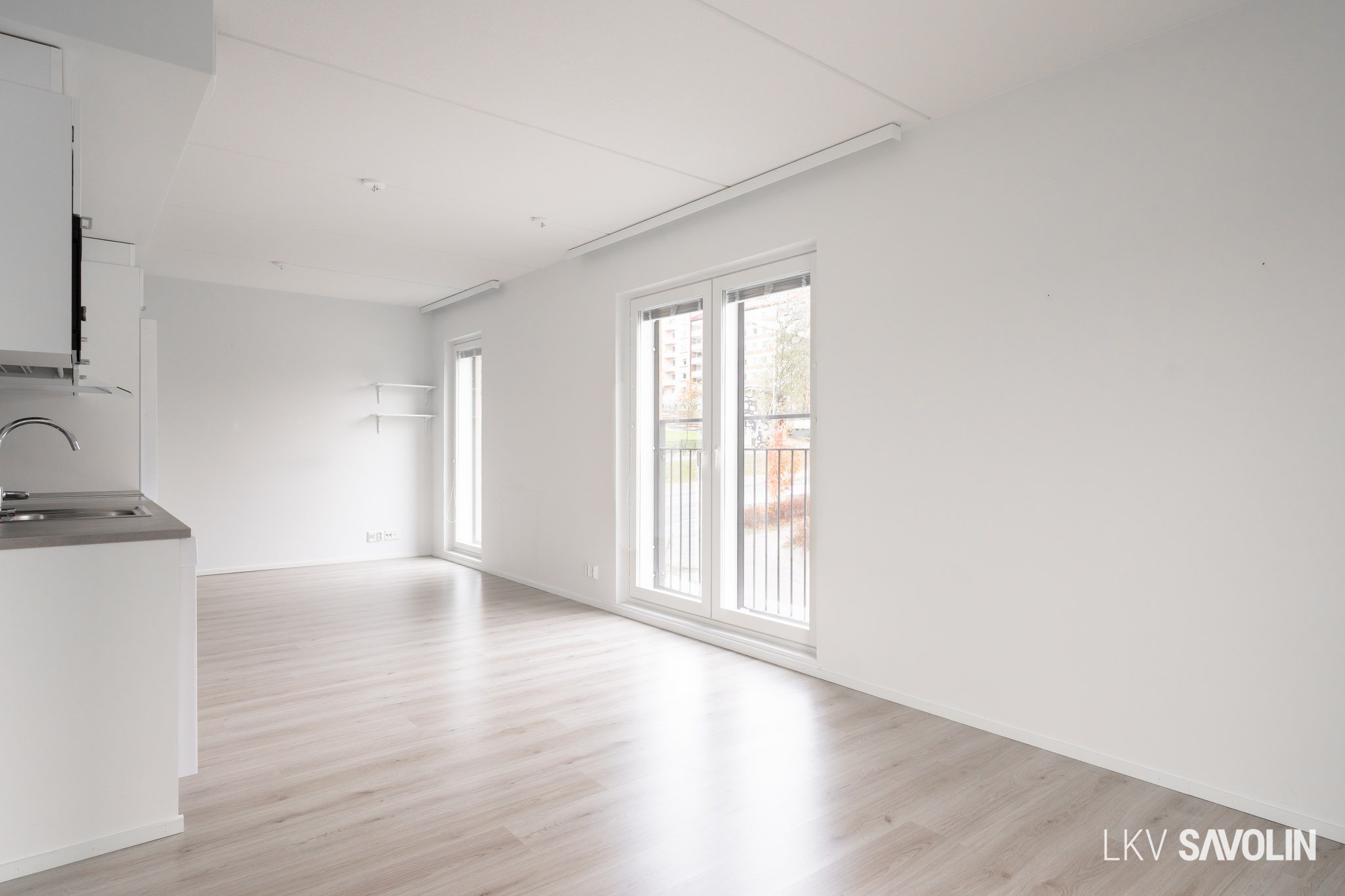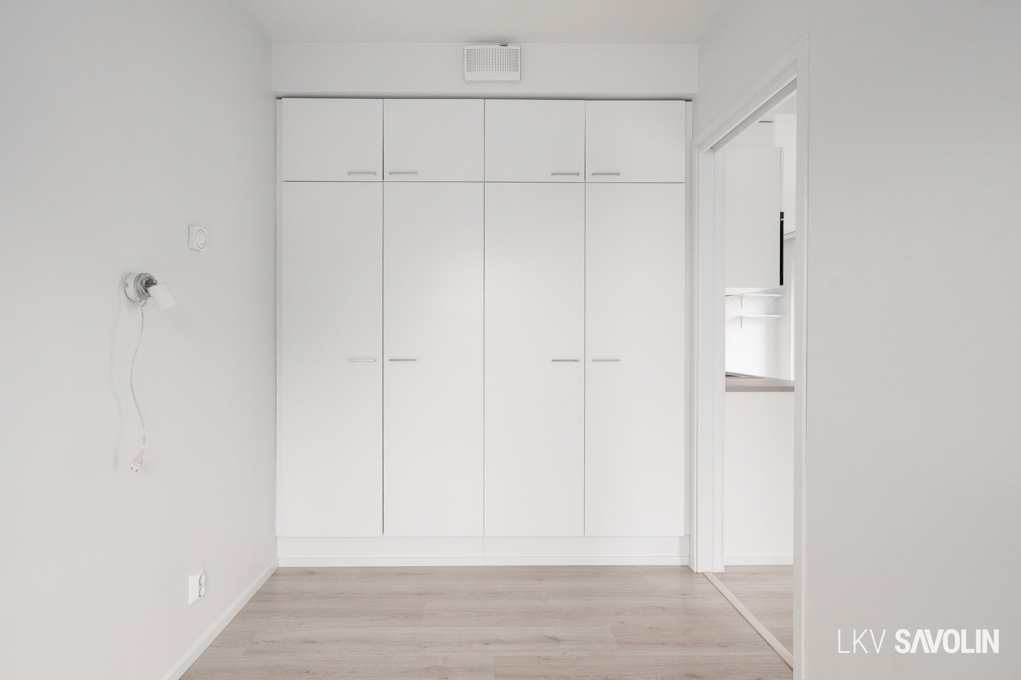 Tässä toisen kerroksen kodissa on 45 neliötä ja pohjaratkaisu on erittäin toimiva. Säilytystilaa löytyy eteisestä, keittiöstä ja makuuhuoneesta sekä lisäksi kellarikerroksen erillisestä lämpimästä varastosta. Jyväsjärvi pilkottaa olohuoneen ja makuuhuoneen ikkunoista. Olohuoneessa on lisäksi ranskalainen parveke.