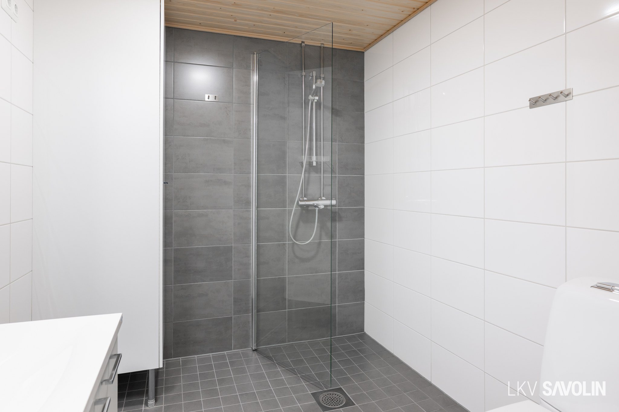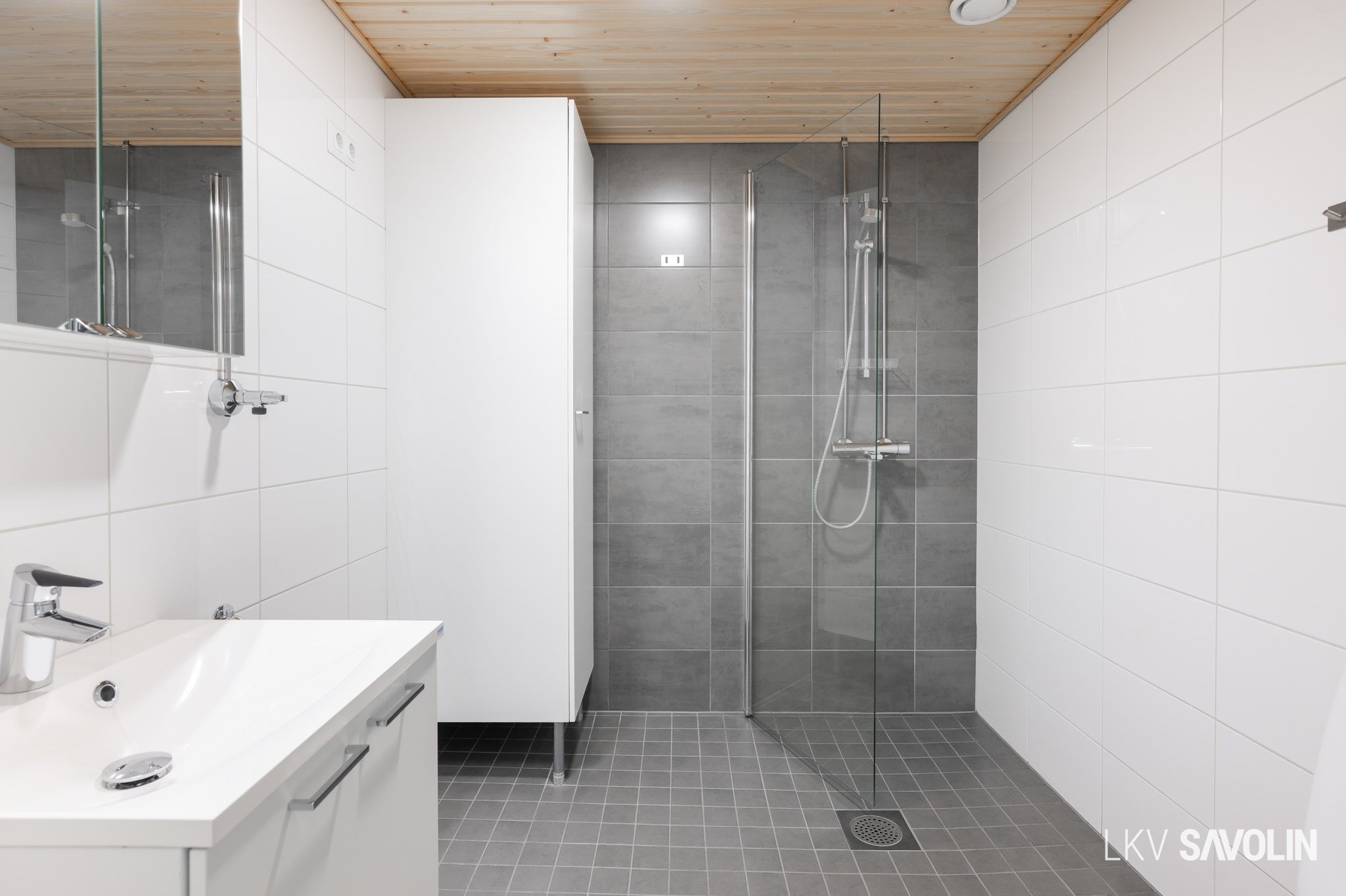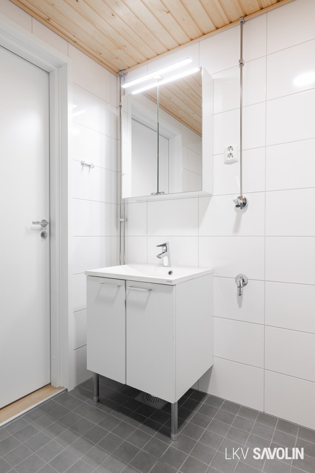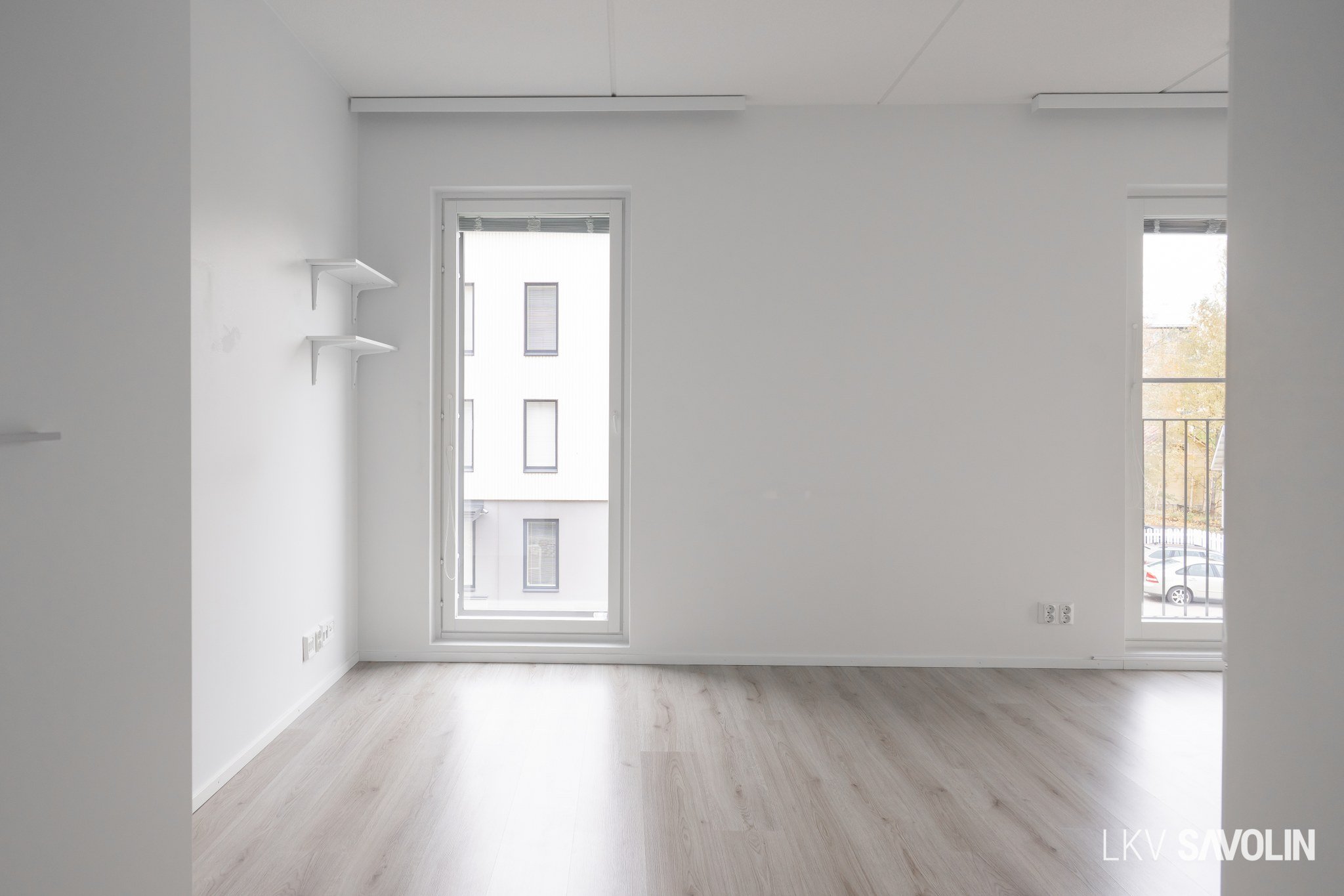Tässä toisen kerroksen kodissa on 45 neliötä ja pohjaratkaisu on erittäin toimiva. Säilytystilaa löytyy eteisestä, keittiöstä ja makuuhuoneesta sekä lisäksi kellarikerroksen erillisestä lämpimästä varastosta. Jyväsjärvi pilkottaa olohuoneen ja makuuhuoneen ikkunoista. Olohuoneessa on lisäksi ranskalainen parveke.