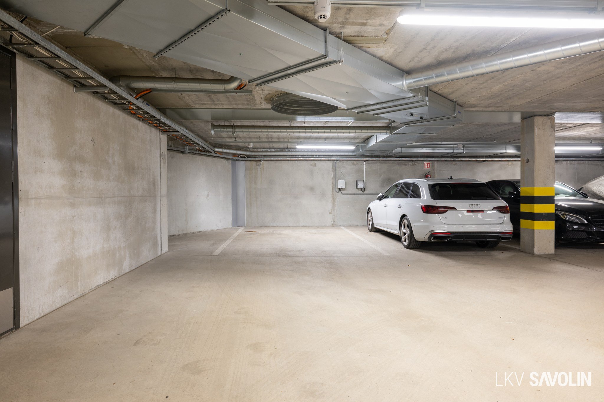 Tilava maasturinmenevä autohallipaikka myydään omana osakkeena hintaan 11 000 euroa. Autohalliin pääset kätevästi hissillä.