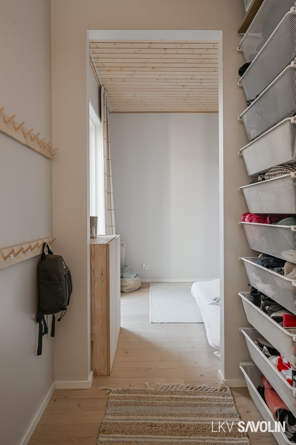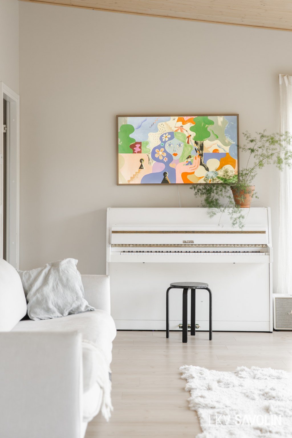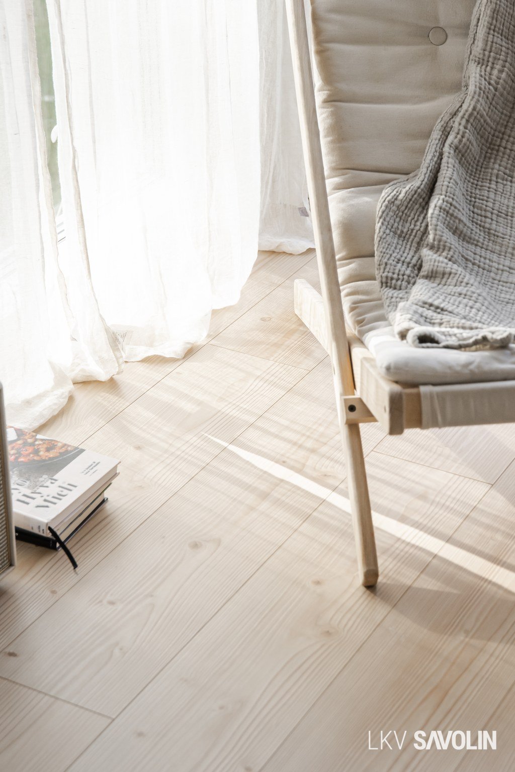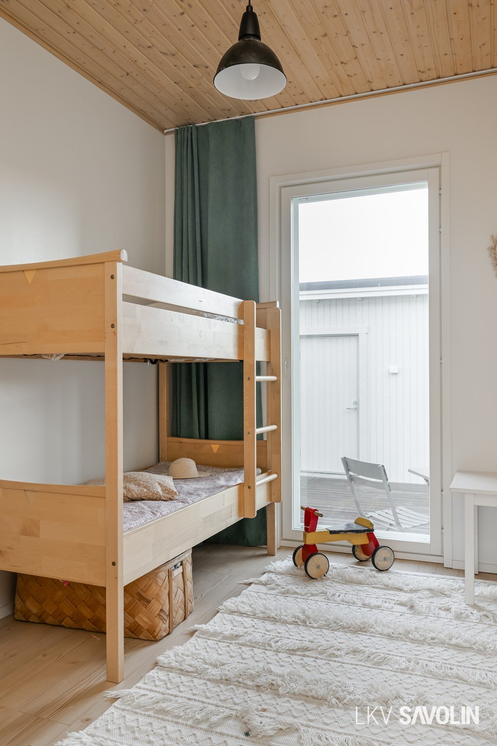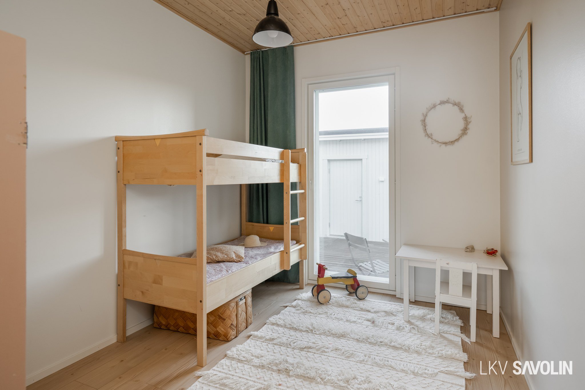 Lattiasta kattoon olevat ikkunat tuovat runsaasti valoa sisätiloihin.